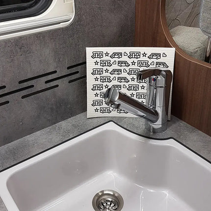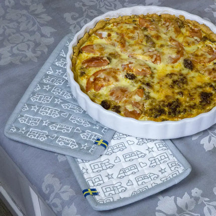 Pannenlappen met camper of caravan print - set van 2 stuks - wit/grijs - Pufz