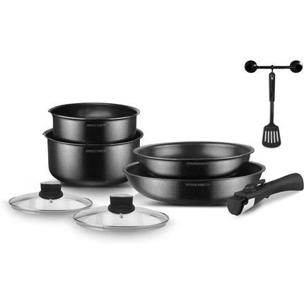 8-delige pannen set zwart met afneembare handgreep - Arthur Martin