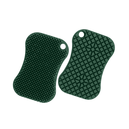 Hygienic double-sided scrubbing sponge with fine and coarse side made of green silicone