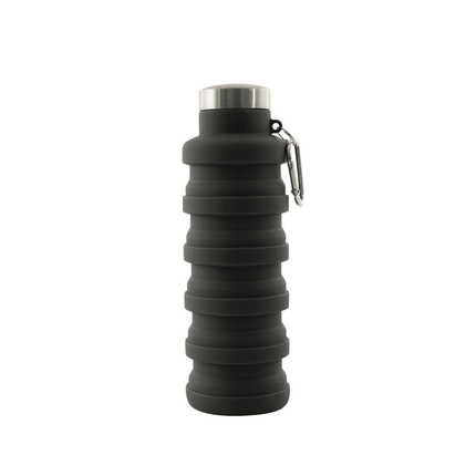 Foldable silicone water bottle 500 ml dark gray with carabiner - Dotz
