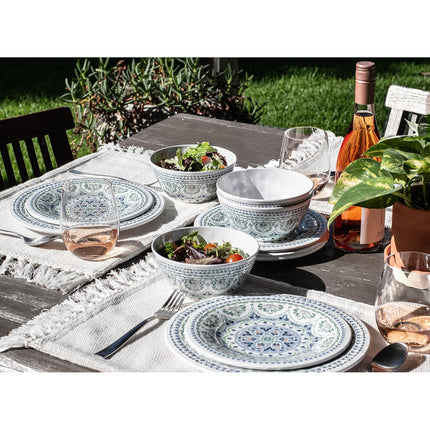 Set de vaisselle Blue Medallion 12 pièces en mélamine : 4 bols 4 assiettes à dîner et dessert