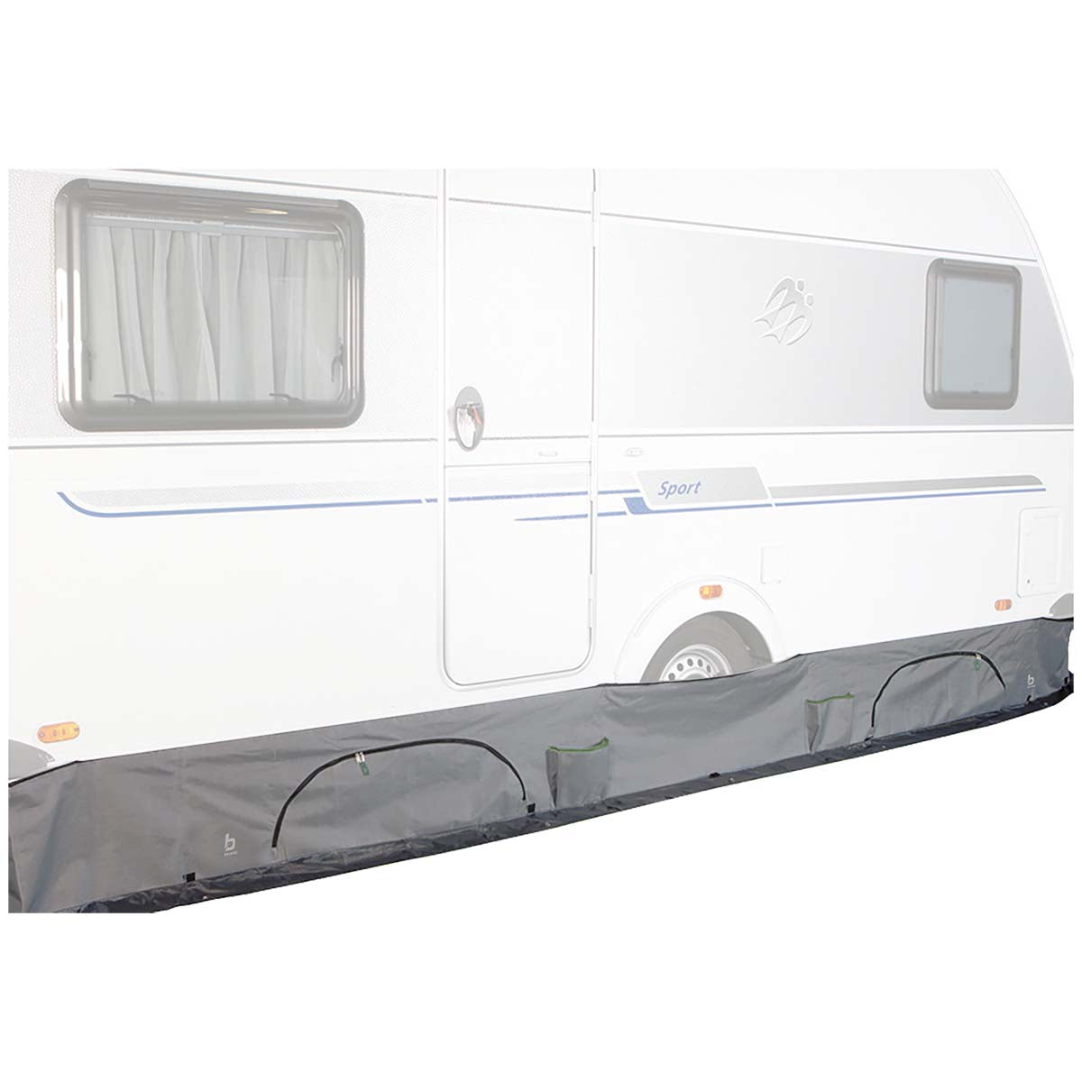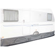 Dankzij de peesbevestiging is de tochtstrook eenvoudig aan de caravanrail te schuiven. Met zeilringen en lusjes span je hem altijd strak af – passend onder vrijwel elke caravan. De strook is geschikt voor caravans van 4 tot 6 meter en kan eenvoudig worden uitgeklapt in stappen van 0,5 meter.