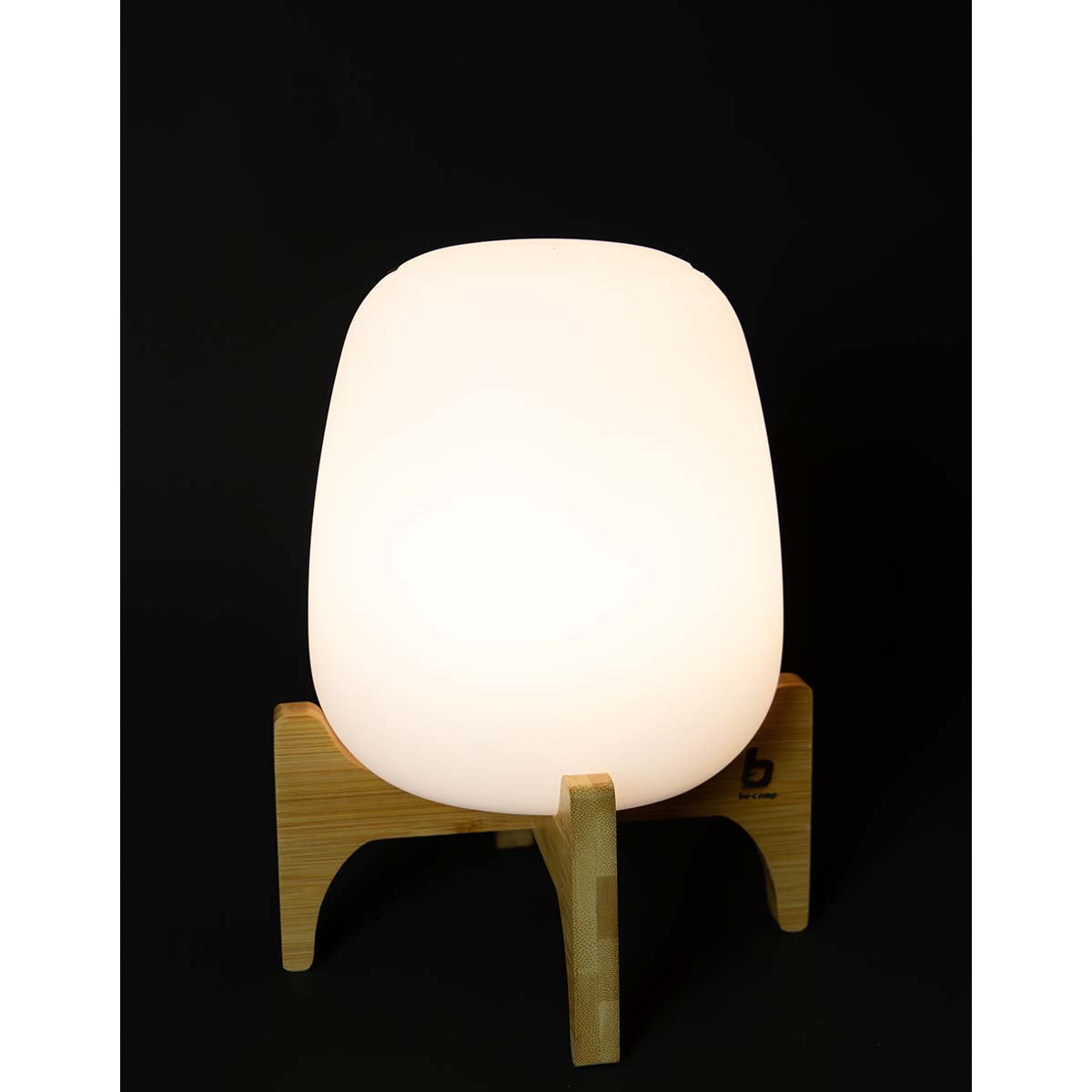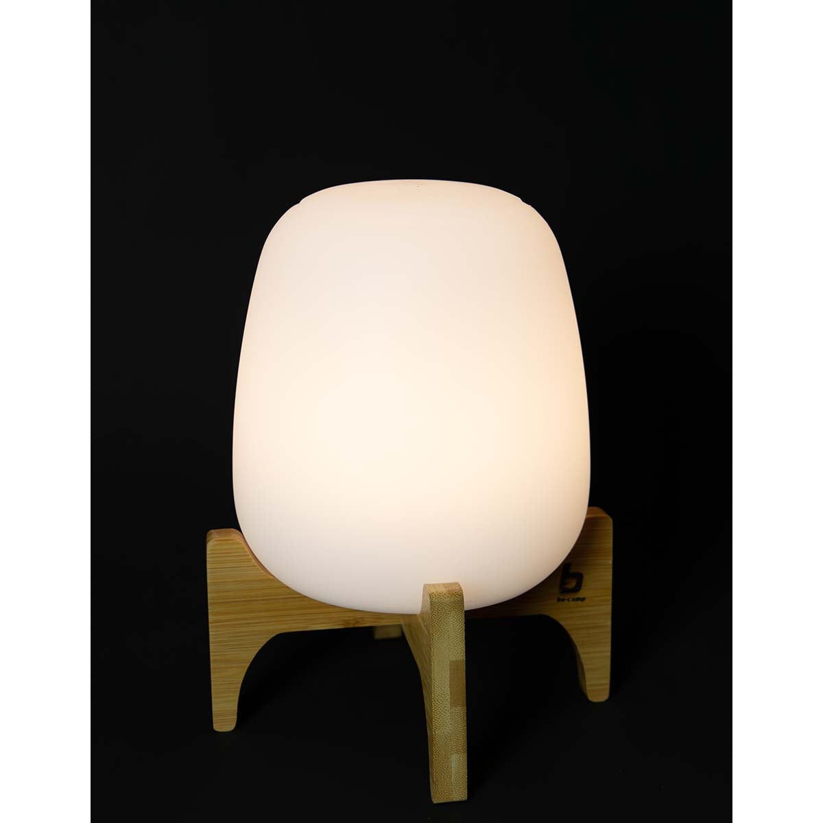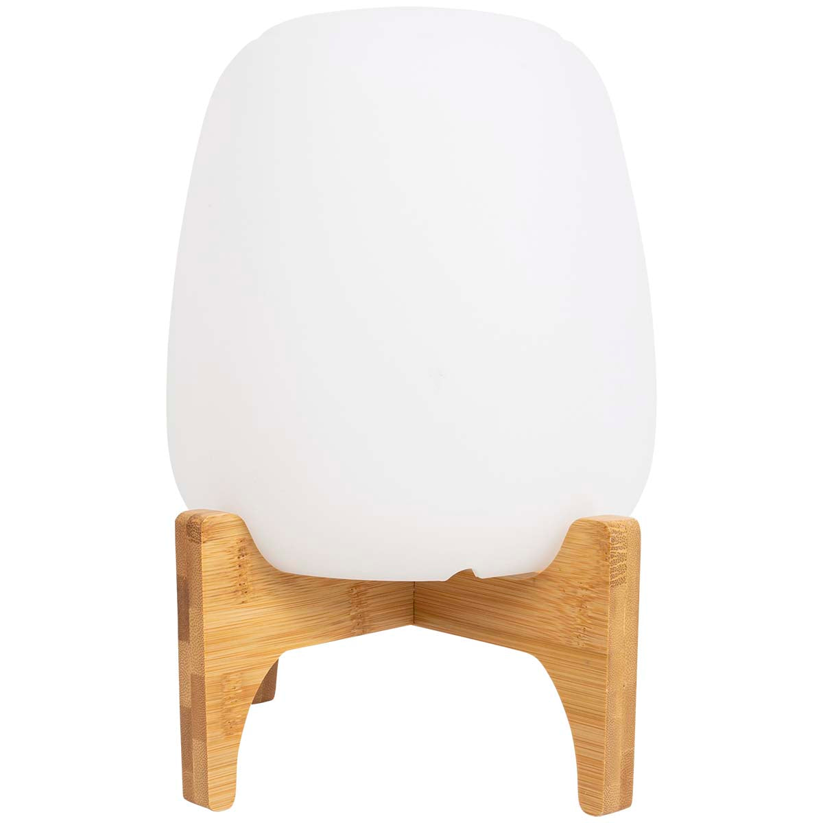 Deze trendy tafellamp op een los bamboe voetstuk is een echte blikvanger voor op tafel of een kastje. De witte matte kap in combinatie met warme LED-verlichting zorgt voor een gezellige sfeer, waar je ook bent.