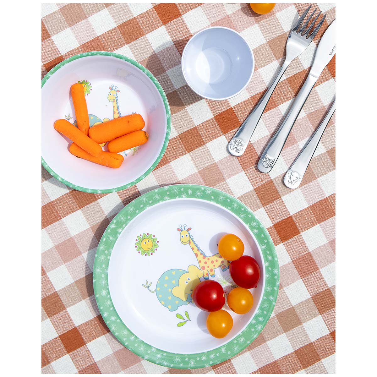 Dit vrolijke 3-delige serviesset combineert functionaliteit met een speels design. Gemaakt van 100% hoogwaardig melamine, is dit servies vrijwel onbreekbaar, kraswerend en lichtgewicht – ideaal voor kleine handjes én grote avonturen op de camping, boot of thuis.