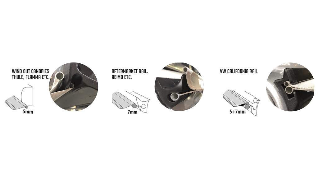 - 5 mm past in een Thule/Fiamma/Dometic/Westfalia-luifel