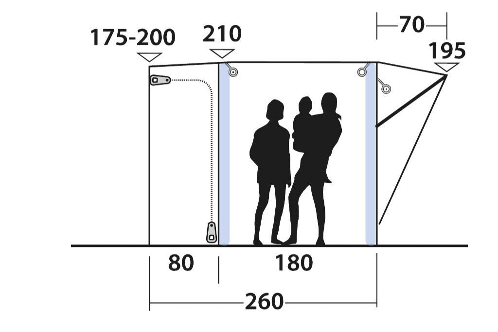 - Geschikt voor het unieke integrale Outwell Nightlight System (gepatenteerd) dat de omgeving verlicht, voor eenvoudige toegang en oriëntatie.